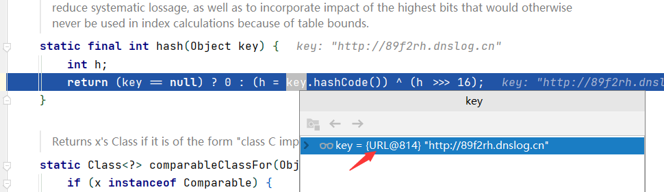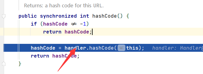 继续跟入,调用了URL类的hashcode方法,因为这个key是⼀个 java.net.URL 对象